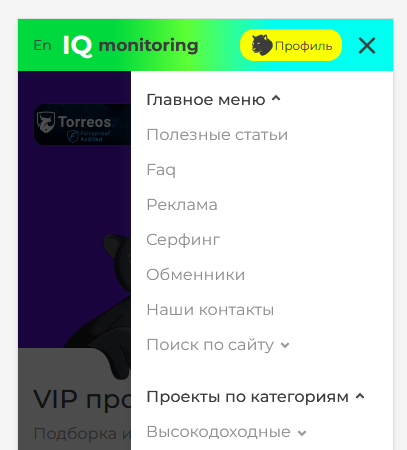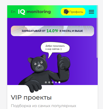 Первый - Vip проекты. Здесь собраны хайпы, которые по тем или иным причинам были выделены особо: либо кажутся перспективными, либо демонстрируют достойный срок работы для своих процентов, либо по ним имеется страховой фонд (о страховках отдельно поговорим чуть ниже). К проектам из данного раздела стоит присмотреться в первую очередь, но, как и любой другой хайп, закрыться они могут в любой момент, про это забывать не стоит.