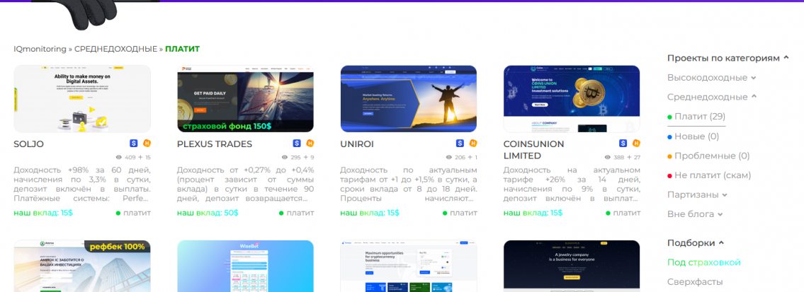 Ознакомившись с представленной информацией и приняв для себя решение, что это вам интересно, осознав все риски, заведя кошельки, вы начинаете смотреть сами проекты и уже готовы закинуть в несколько по 100$ Но, погодите, не торопитесь, давайте перед этим, мы немного разберёмся в том, какие бывают проекты, как быстро и просто находить интересующие именно вас на нашем сайте, а также куда можно, а куда нельзя закидывать те самые 100$