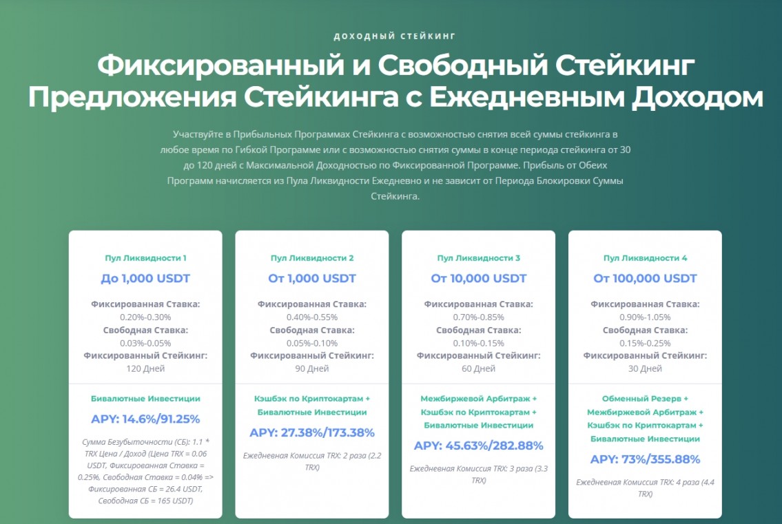 МИН. ВКЛАД: 30$ (ниже нет смысла, так как с учётом комиссий в trx, будет получаться убыток)
