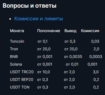 ВЫВОД ОТ 2$, зависит от монеты, также есть фиксированные комиссии, подробно ниже