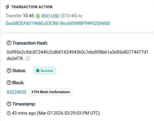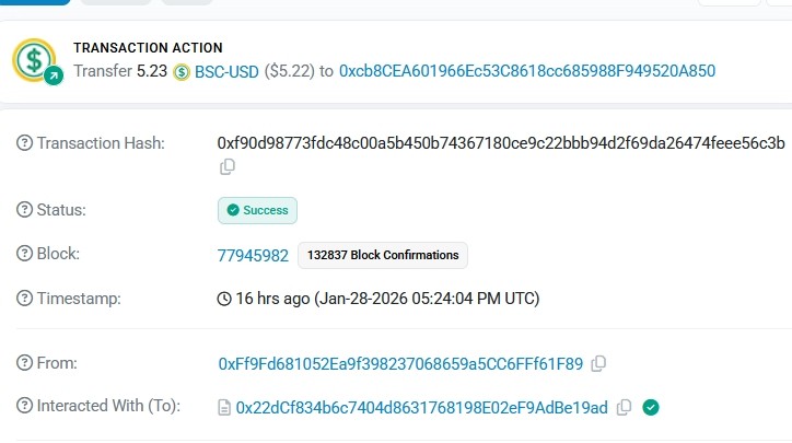 https://bscscan.com/tx/0xfb125fe63090c26ba02be3267eb487774591399a5cff66e3bf4863