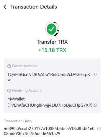 Моментальный вывод +15,2 TRX