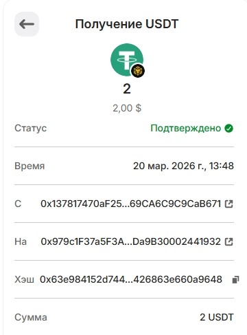 Депозит 20 USDT March 25, 2026, 2:14 pm