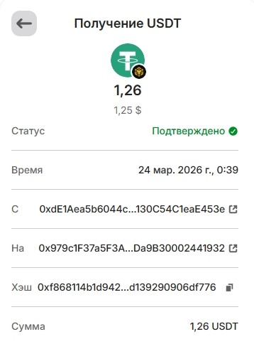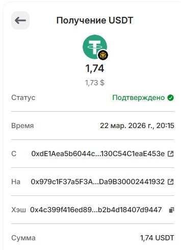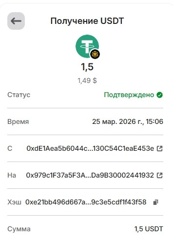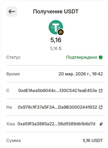Депозит 20 USDT March 25, 2026, 2:14 pm