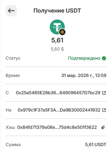 Спасибо за рефбек от eldergarde 0.5 USDT.