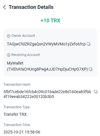 https://tronscan.org/#/transaction/2086fa8af8112e03f125521fabc05c6621b2dae359f5