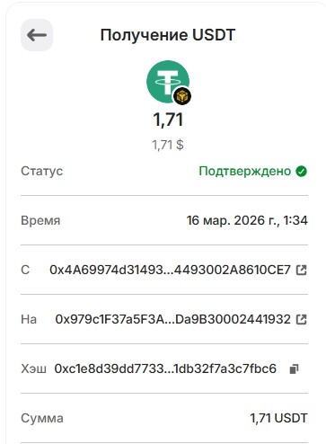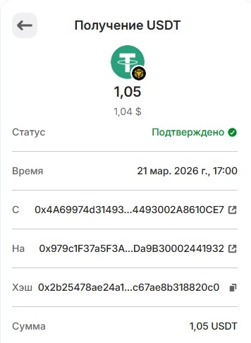 Депозит 20 USDT March 25, 2026, 2:14 pm