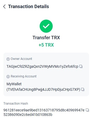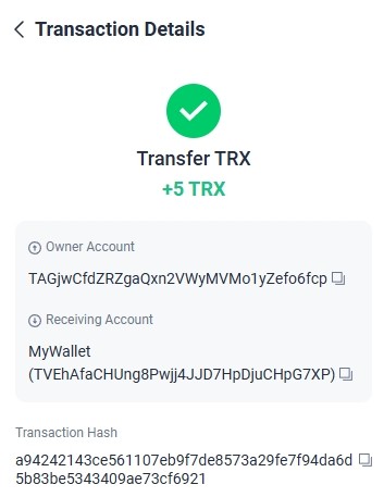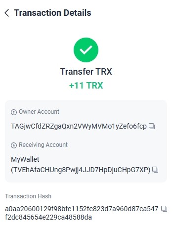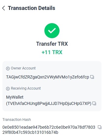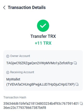 https://tronscan.org/#/transaction/2086fa8af8112e03f125521fabc05c6621b2dae359f5
