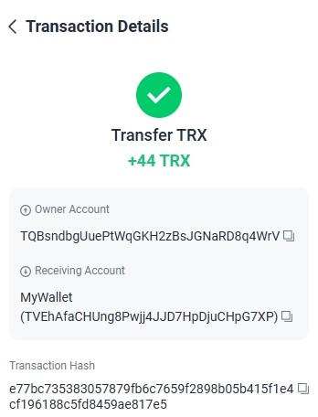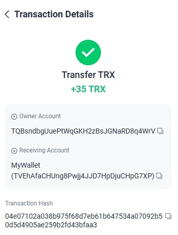 https://tronscan.org/#/transaction/2086fa8af8112e03f125521fabc05c6621b2dae359f5